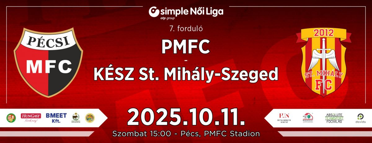 Október 11-én, szombaton 15:00 órától a Simple Női Liga NB I 7. fordulójában a negyedik helyen álló PMFC női együttese a két pozícióval mögötte tanyázó KÉSZ-St. Mihály-Szeged csapatát fogadja a Stadion utcában. Bolboaca Augustin vezette gárdánk szezonkezdése kifejezetten biztató, hiszen eddigi hat bajnoki mérkőzésükből négyet megnyertek, miközben a címvédő FTC-Telekom és a jelenleg második helyen álló MTK Budapest ellen is ígéretes játékot mutattak. A legutóbbi, Videoton FC elleni idegenbeli kupasiker és továbbjutás pedig további önbizalmat és lökést adhat a sikeres őszi folytatásra.