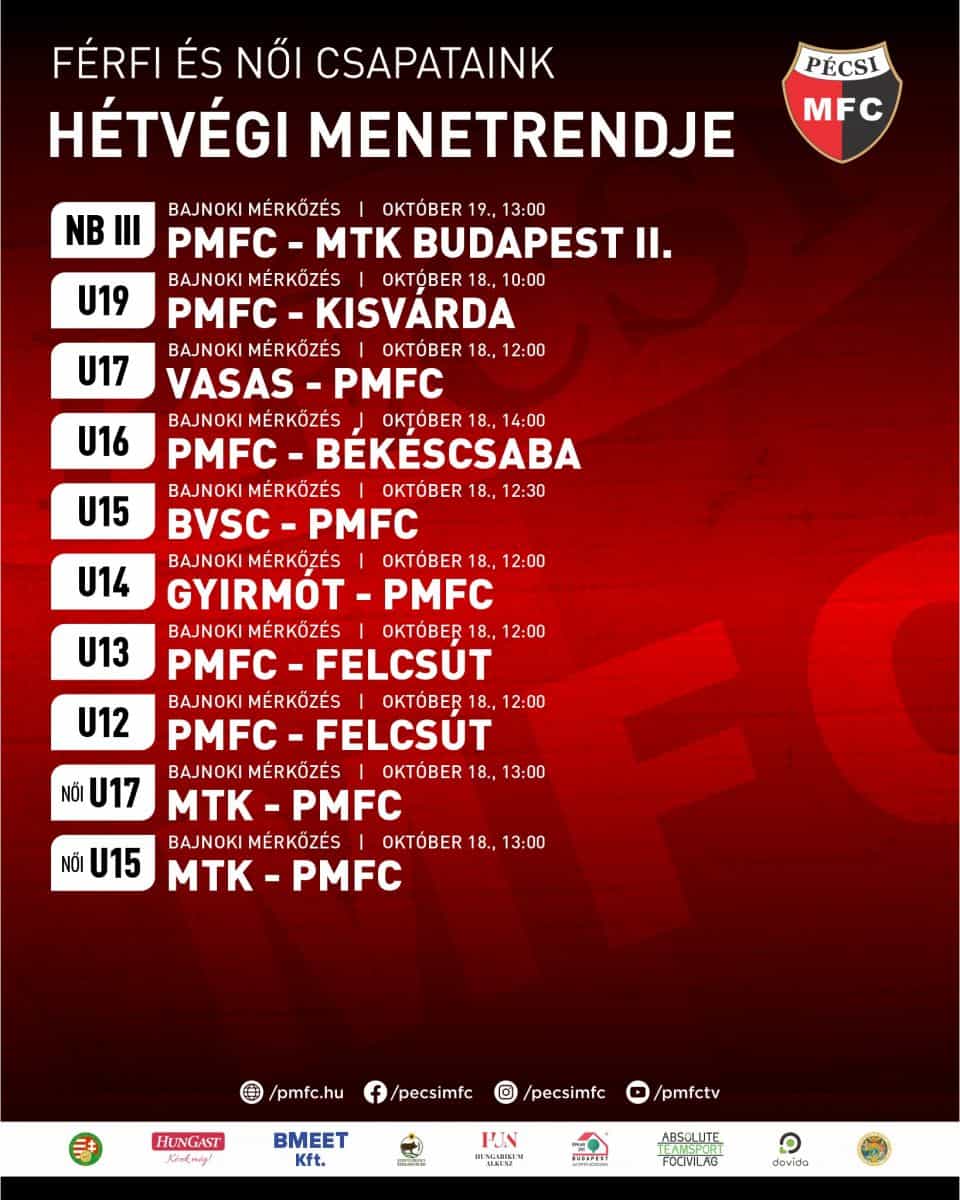 Fiú U19-es, U16-os, U13-as és U12-es együtteseink hazai bajnokit játszanak, míg a többi nagypályás korosztályunk a hétvégén idegenbe látogat. Szombaton délelőtt és koradélután meccsdömping várja az érdeklődőket kovácstelepi edzőközpontunkban. Íme a részletek: