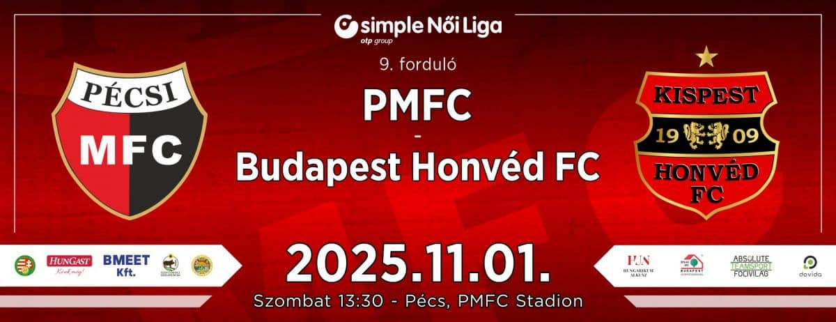 A közel két és fél hetes válogatott szünetet, valamint egy köztes edzőmérkőzést követően november 1-jén, szombaton 13:30-kor ismét hazai közönsége előtt szerepel női NB I-es labdarúgócsapatunk. A Simple Liga 9. fordulójában a mögöttünk két hellyel, a nyolcadik pozícióban álló Budapest Honvéd FC lesz az ellenfél a PMFC Stadionban.