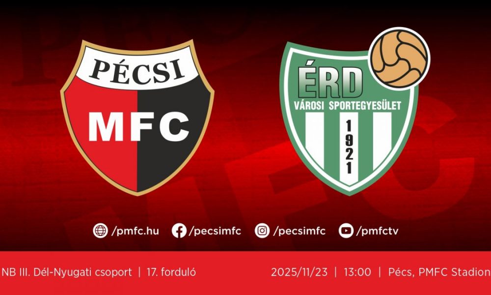 NB III-as labdarúgócsapatunk a Dél-Nyugati csoport 17. fordulóban az Érdi VSE együttesét fogadja a PMFC Stadionban. A vasárnap 13:00 órakor kezdődő bajnoki mérkőzést élőben követhetitek a PMFC TV YouTube-csatornáján – VIDEÓ.