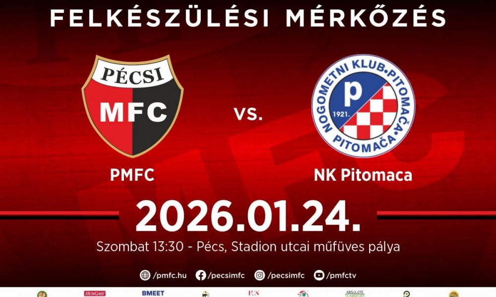 Amint arról korábban részletesen beszámoltunk, NB III-as labdarúgócsapatunk január 15-én kezdte meg a felkészülést a bajnokság tavaszi szezonjára. A piros-feketék már túl vannak a háromnapos, erő- és állóképesség fejlesztő harkányi edzőtáboron, a hétvégén pedig edzőmérkőzés vár a PMFC-re. A terheléses időszak első gyakorlómeccsén a horvát harmadosztályú NK Pitomaca lesz a vendégünk január 24-én, szombaton 13:30-tól, a Stadion utcai műfüves pályán. A találkozót nézők előtt játsszuk le, a belépés ingyenes lesz, míg a helyszínen büfé is üzemel, ahol évszaknak megfelelő kínálattal várjuk a kilátogató szurkolókat.