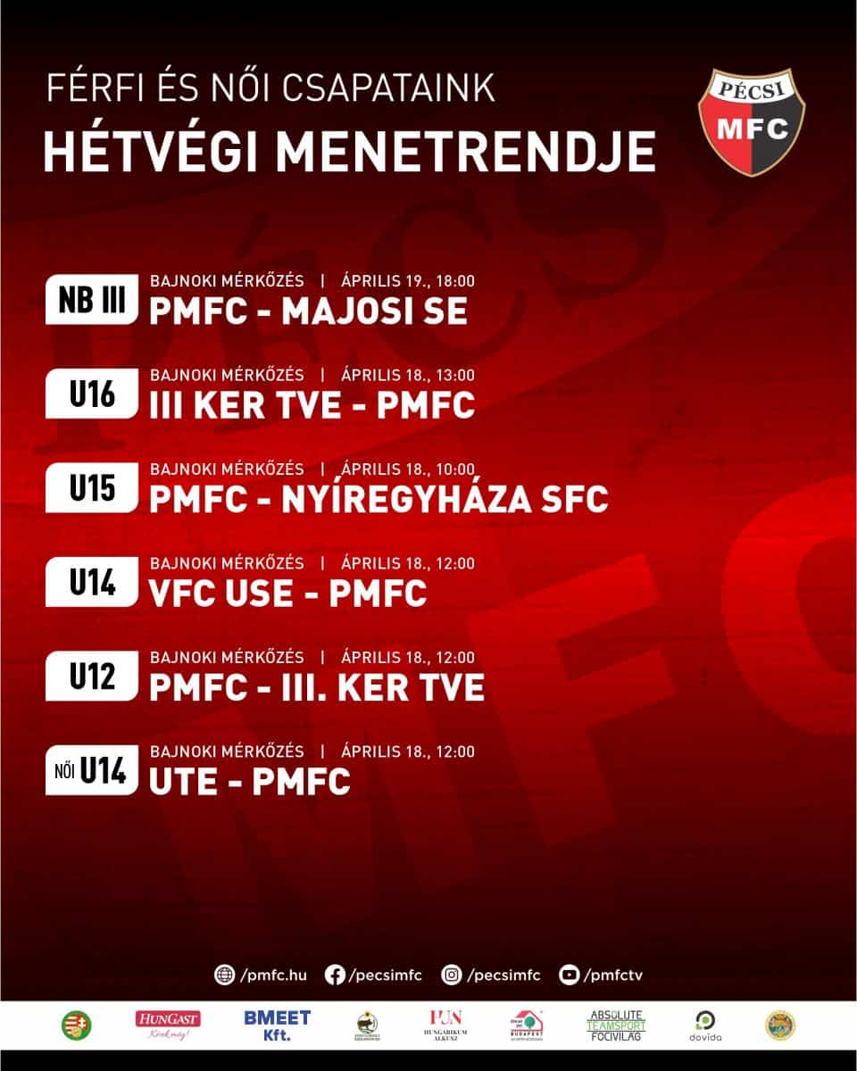 A megszokottól eltérően ezúttal kevesebb utánpótlás-csapatunk lép pályára, de így sem maradunk mérkőzések nélkül a hétvégén. Szombaton két korosztályunk hazai környezetben bizonyíthat: az U15-ösök 10:00-tól a Nyíregyházát, míg az U12-esek 12:00-től a III. Kerületet fogadják. Idegenben is több csapatunk lesz érdekelt: az U16-osok 13:00-tól Óbudán, az U14-esek 12:00-től Veszprémben, a leány U14-esek pedig szintén 12:00-tól Újpesten lépnek pályára. Női NB I-es együttesünk ezúttal sem játszik bajnoki mérkőzést, viszont férfi NB III-as csapatunk vasárnap 18:00-tól a Majosi SE-t fogadja.