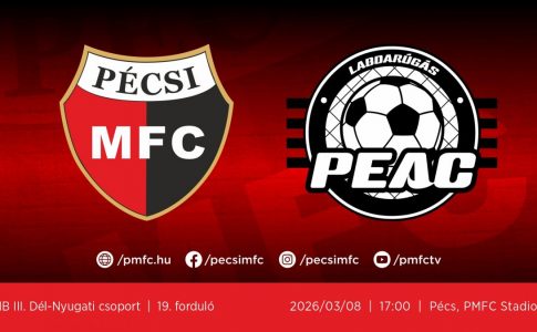 NB III-as labdarúgócsapatunk a Dél-Nyugati csoport 19. fordulóban a PTE-PEAC együttesét fogadja a PMFC Stadionban. A vasárnap 17:00 órakor kezdődő ... -